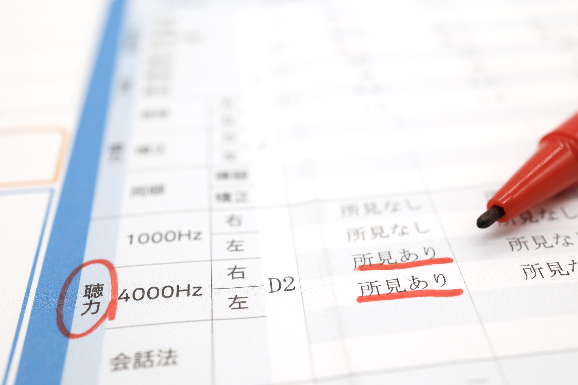 健康診断の聴力検査では、1000Hzで30dB以下、4000Hzで30〜40dBの音が聞き取れていれば、基本的に「異常なし」と判断されます。